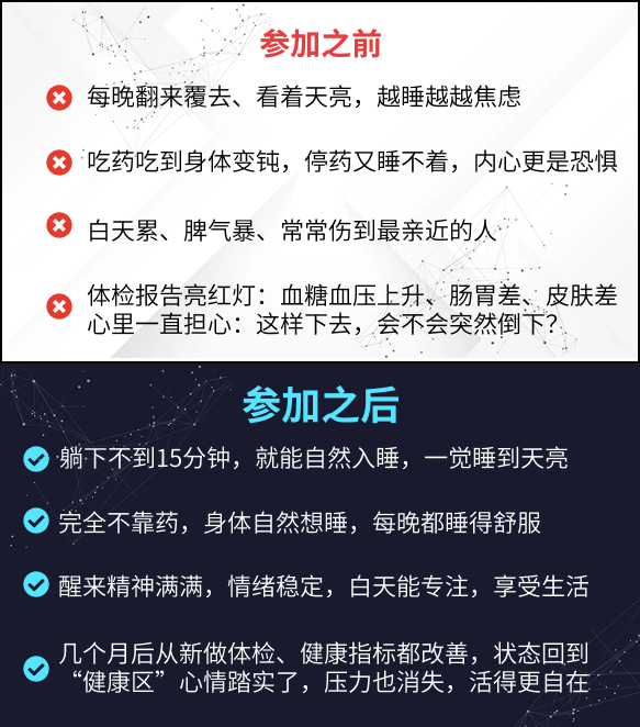 无论你失眠了3个月还是10年,30天都能看到改变,不仅能睡得着,还会让你整体健康也同步改善。